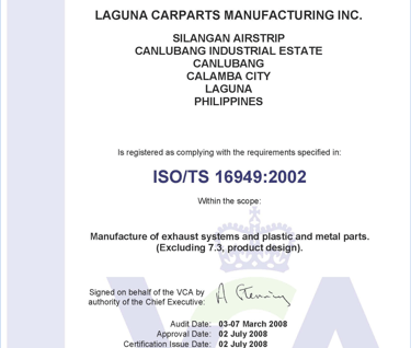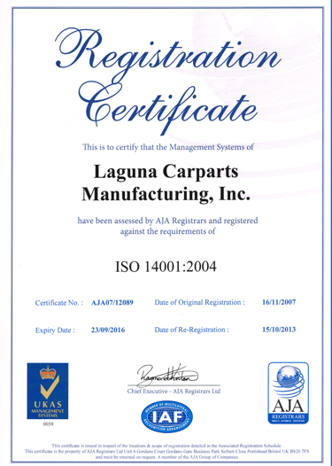 As we conduct our business, Laguna Carparts Mfg., Inc, an OEM manufacturer of Exhaust systems, metal, and plastic parts for the automotive, appliance, and electronics industry, is committed to satisfying our customers and protecting and improving our environment.